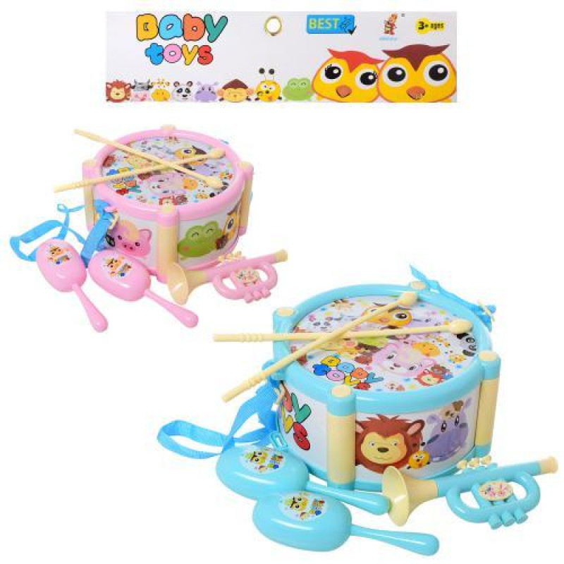 Набор детских музыкальных инструментов включает барабан, дудочку и маракасы и представлен в двух цветах, что позволяет ребёнку выбрать понравившийся инструмент и с удовольствием погрузиться в игру. В процессе игры малыш экспериментирует со звуками, ритмами и темпом, что способствует развитию слухово..