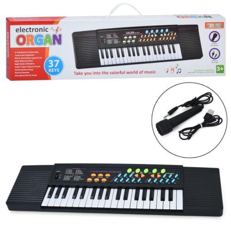 Дитячий синтезатор із 37 клавішами розміром 53,5*15см створений для першого знайомства дитини з музикою та розвитку слуху, ритму й координації. Інструмент дозволяє виконувати прості мелодії, експериментувати зі звуками та створювати власні музичні композиції завдяки різним музичним режимам, вбудован..