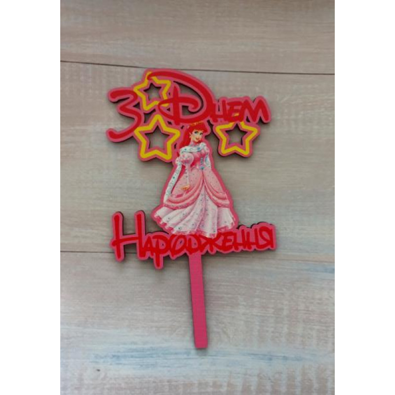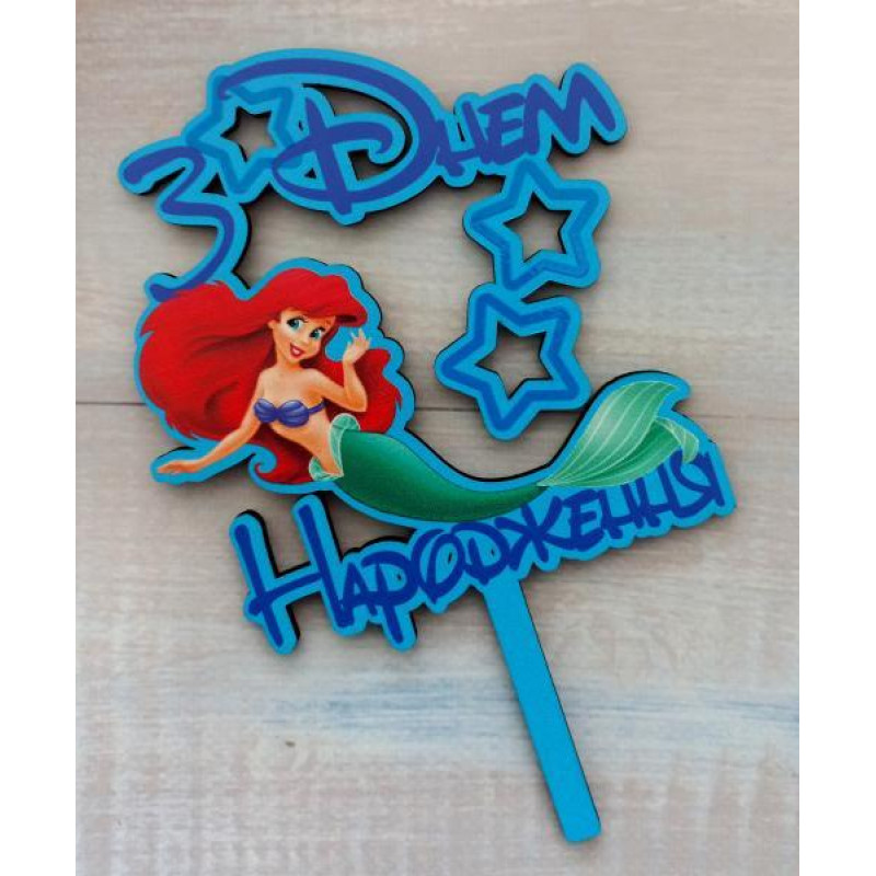 Топпер детский "Принцесса Ариэль" С Днем рождения, деревянный, пак. 18*14см..