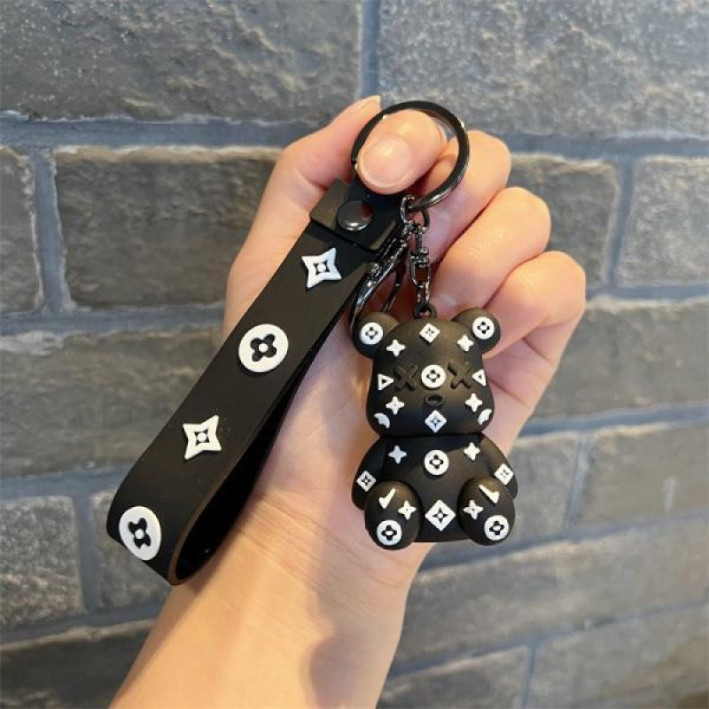 Брелок «Медведь черный с принтом LV», силиконовый 12см, с карабином...