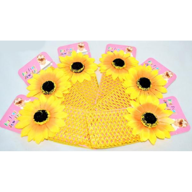 Детские повязки на голову "подсолнух", ЦЕНА ЗА 6ШТ, в пак. 20*13см