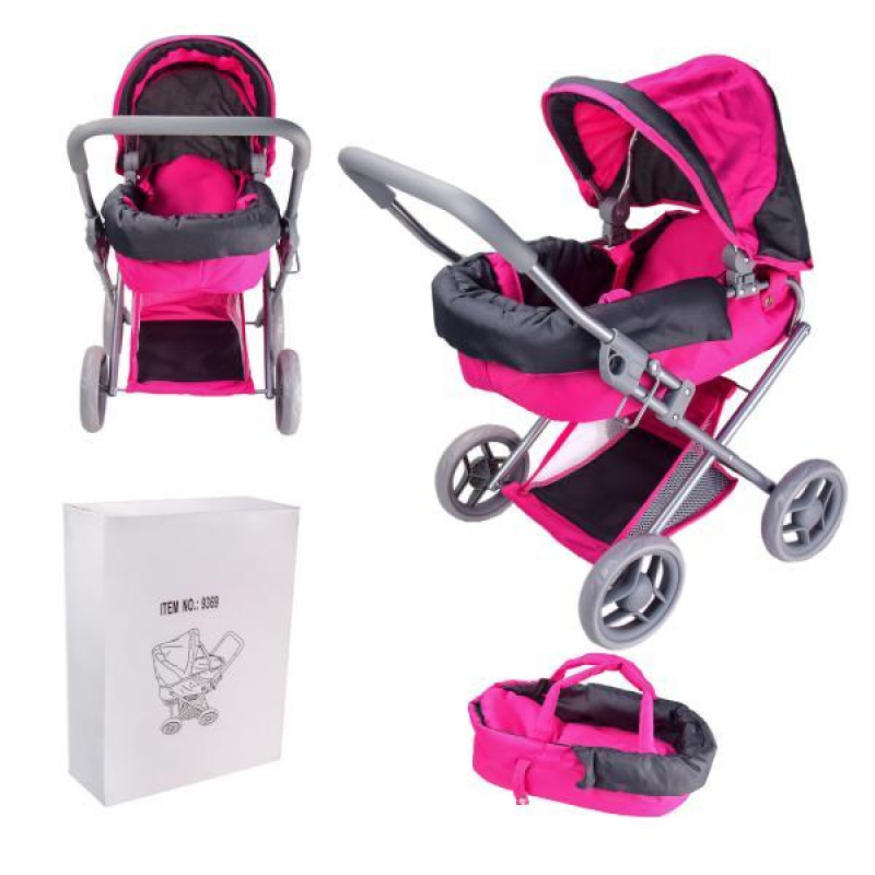 Коляска для куклы, трансформер, 65*40*85см, люлька 58*28*13см, регул.ручка EVA, корзина, металл, в кор.39*50*15см