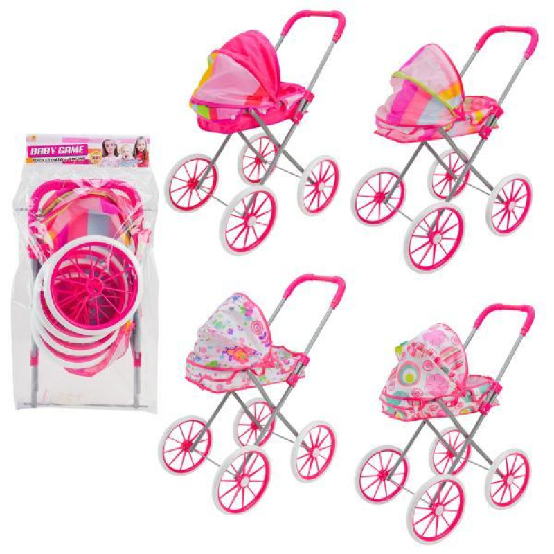 Игрушечные кроватки и коляски для кукол – необходимый элемент для игры в дочки-матери. Они сделают игру девочки с куклами яркой и насыщенной! Основные характеристики товара: Коляска метал., классика, двойные колеса, 3 цвета, упаковка: пакет 54*46*26см..