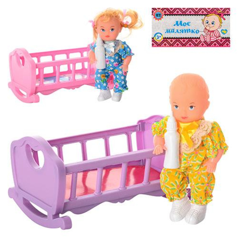 Кроватка-качалка с куклой 15,5см, бутылочка, 2 вида, в пак. 15*26*4см