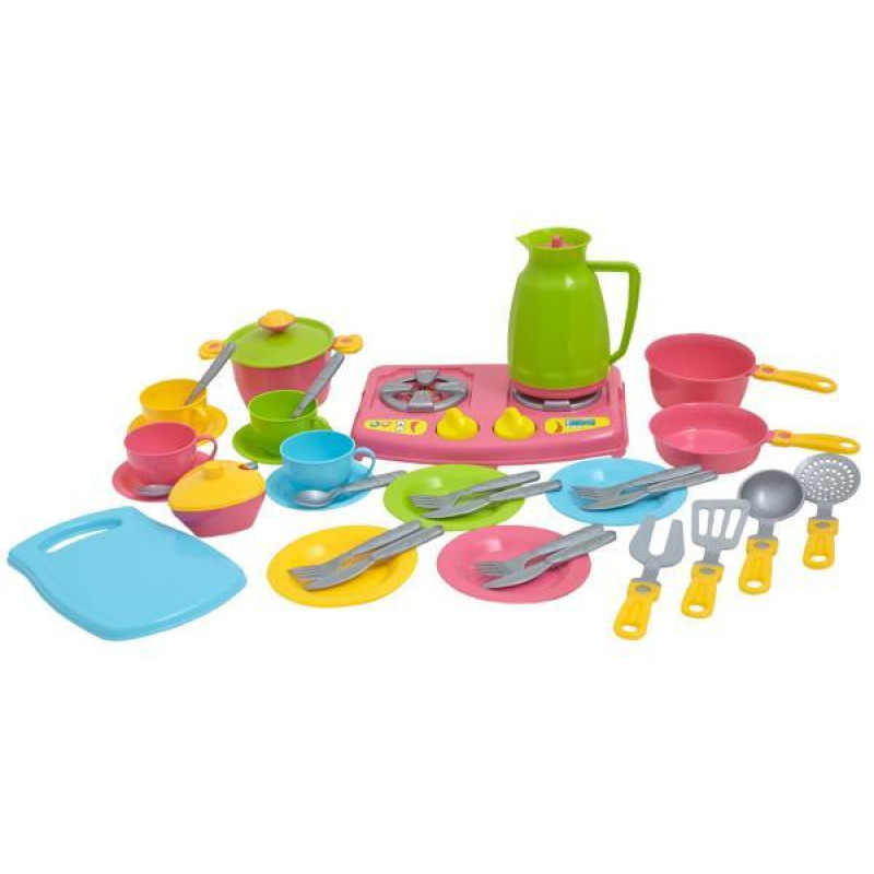 Во время игры с игрушечной посудой, муляжами продуктов питания, используя столовые приборы, кухонные принадлежности, дети познают окружающий мир, осваивают социальные роли, привыкают к ответственности. Эта яркая функциональная игрушка придется по вкусу любой маленькой хозяюшке. Основные характеристи..