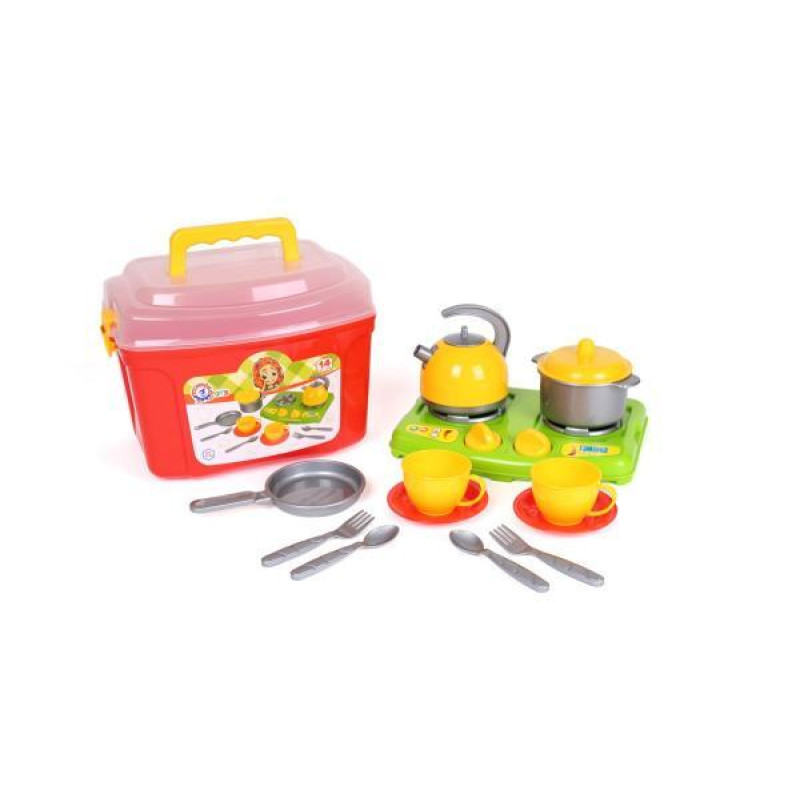 Во время игры с игрушечной посудой, муляжами продуктов питания, используя столовые приборы, кухонные принадлежности, дети познают окружающий мир, осваивают социальные роли, привыкают к ответственности. Эта яркая функциональная игрушка придется по вкусу любой маленькой хозяюшке. Основные характеристики товара: Кухонный набор 10, 14 предм., в чемодане 20*19*17см, ТМ Технок, Украина