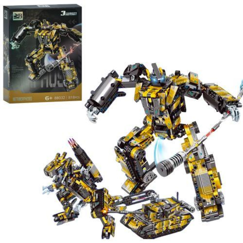 Конструктор 3в1имеет 818 деталей, может превращаться в робота, динозавра или танк в ярком желтом цвете. Совмещает увлечения техникой и животными, каждый день новая игрушка. Отличный вариант подарка...