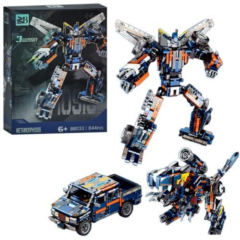 Конструктор 3в1имеет 844деталей, превращаться в робота, динозавра или внедорожник. Каждый может собрать любимый вариант игрушки. В игровой форме развивается моторика и внимание ребенка...