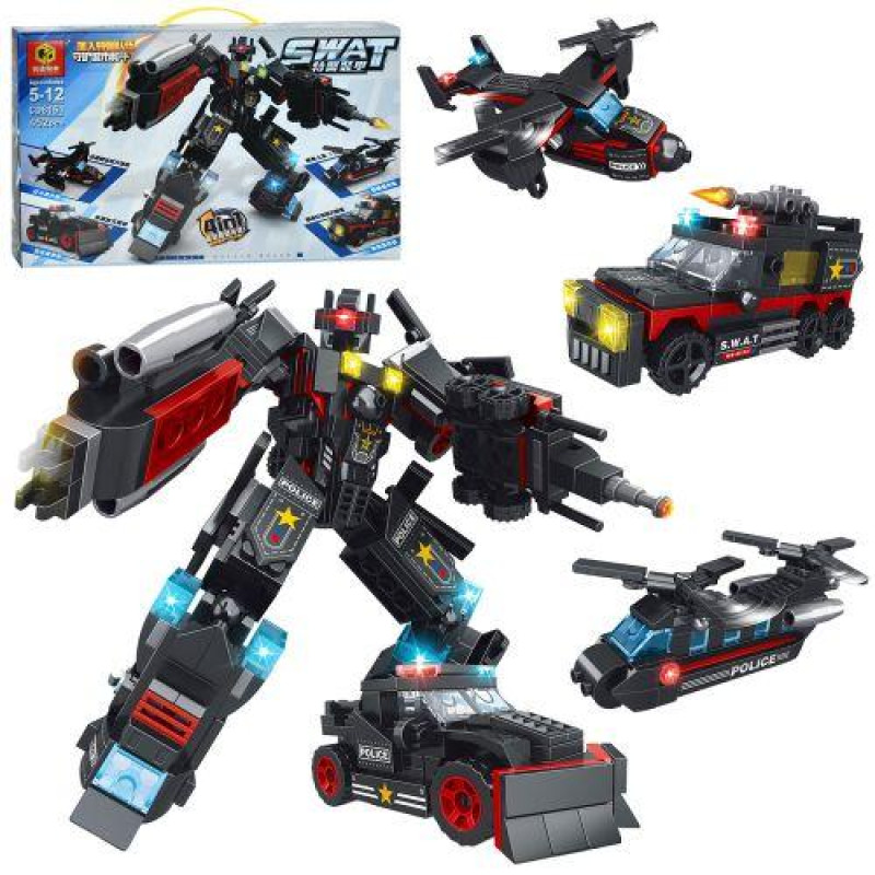 Конструктор состоит из из 600 деталей, из которых можно собрать трансформер или 12 видов полицейского транспорта. Каждая модель транспорта запечатана и пронумерована в пакете. Отличный и разнообразный вариант для развития ребенка от 6 лет...