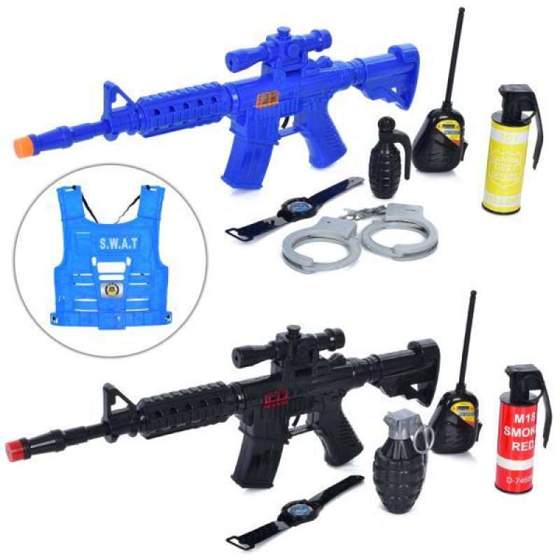 • Набор амуниции жилет, автомат, 6 предметов, 2 цвета, пак. 53*36*6см