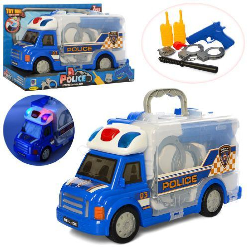 Машинка полиция 33,5см, наручн.пистолет, рация, св, зв, батар., в кор.35*22*14,5см..