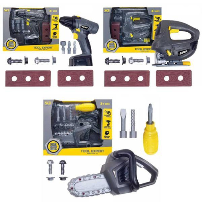 игрушечные электроинструменты: дрели (шуруповерты) механические со съемными сверлами или дрели со звуковыми и световыми эффектами;