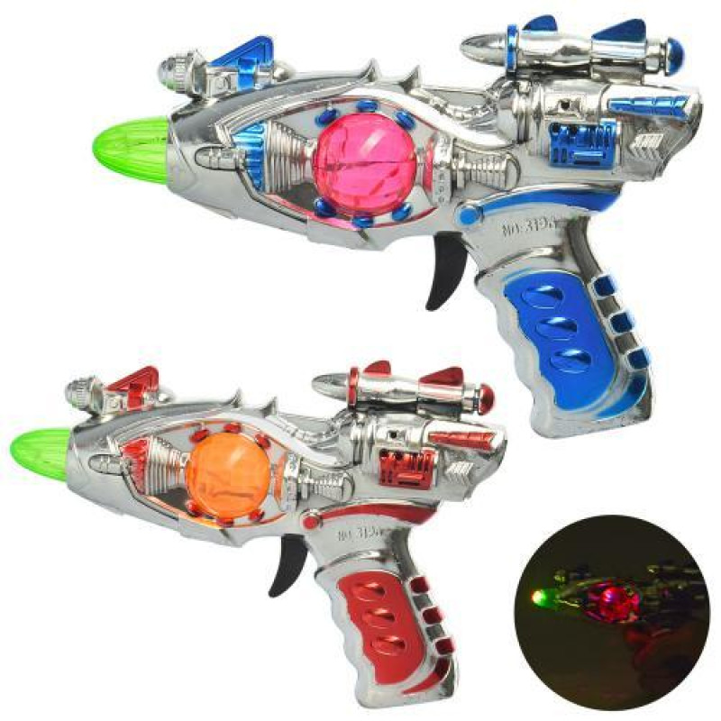 Пистолет 17см, звук, свет, 2 цвета, бат., в пак. 17*12*2см..
