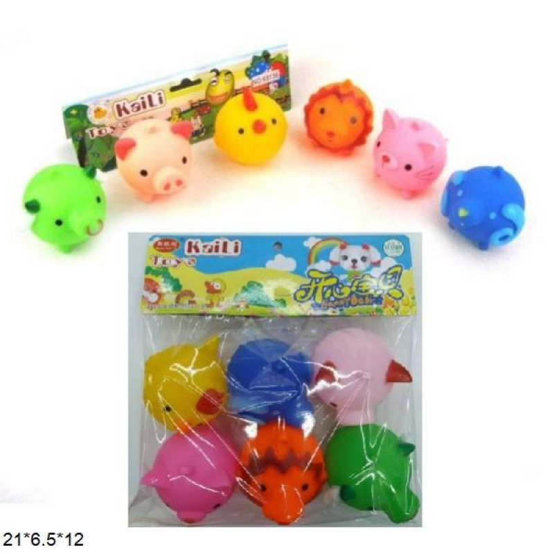 Пищалка брызгалка, 6 видов зверюшек, пак. 23,3*20см..