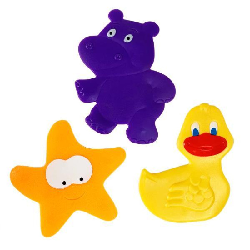 Набор ковриков для купания (уточка, звезда, бегемот), пак. 20*16см, ТМ MEGAZayka..