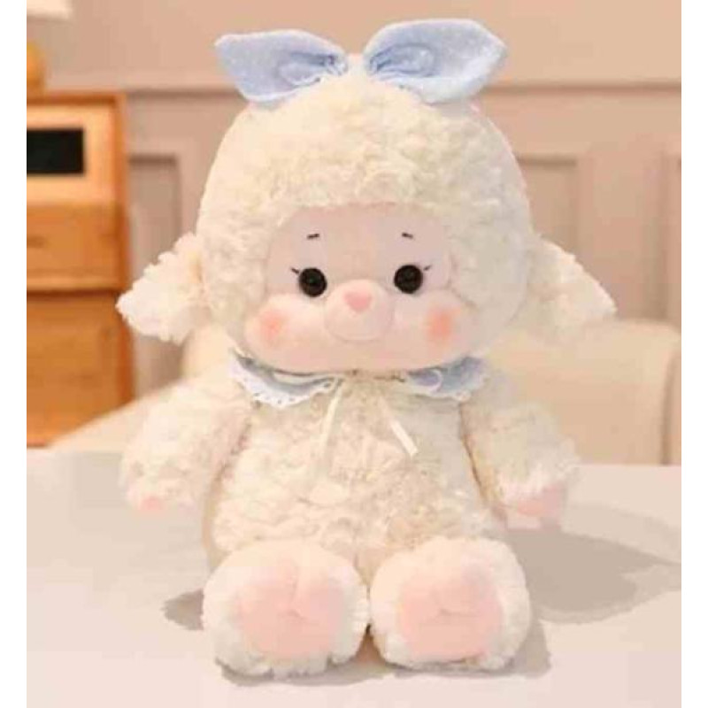 Мягкая игрушка Овечка с голубым бантиком 40см - невероятная мягкая овечка в нежном наряде с голубым бантиком станет настоящим украшением детской комнаты или любимой игрушкой для объятий. Выполненная в изящном стиле «каваи», она излучает тепло, уют и сказочную магию. Белоснежная пушистая шерсть гармо..
