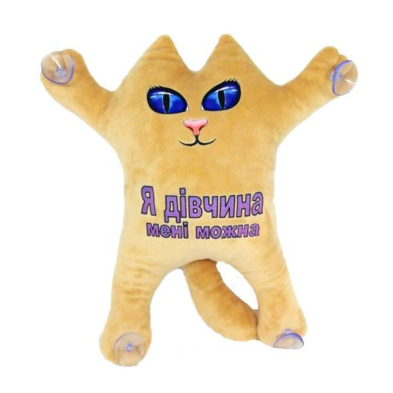 Мягкая игрушка Котик 30см на присосках "Я девушка, мне можно" бежевый, ТМ Dreamtoys, арт: KotDB4