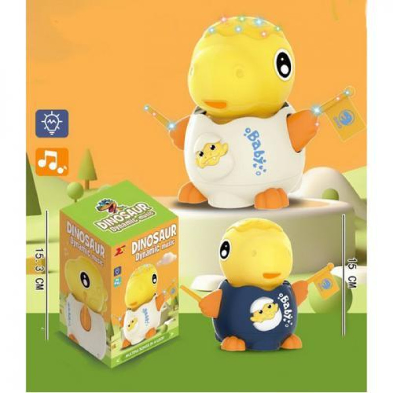 Музыкальная игрушка динозавр, 15см, музыка, свет, ездит/танцует, подвижные детали, 2 цвета, на бат., в кор. 11*15,3*10см, ст: 2366