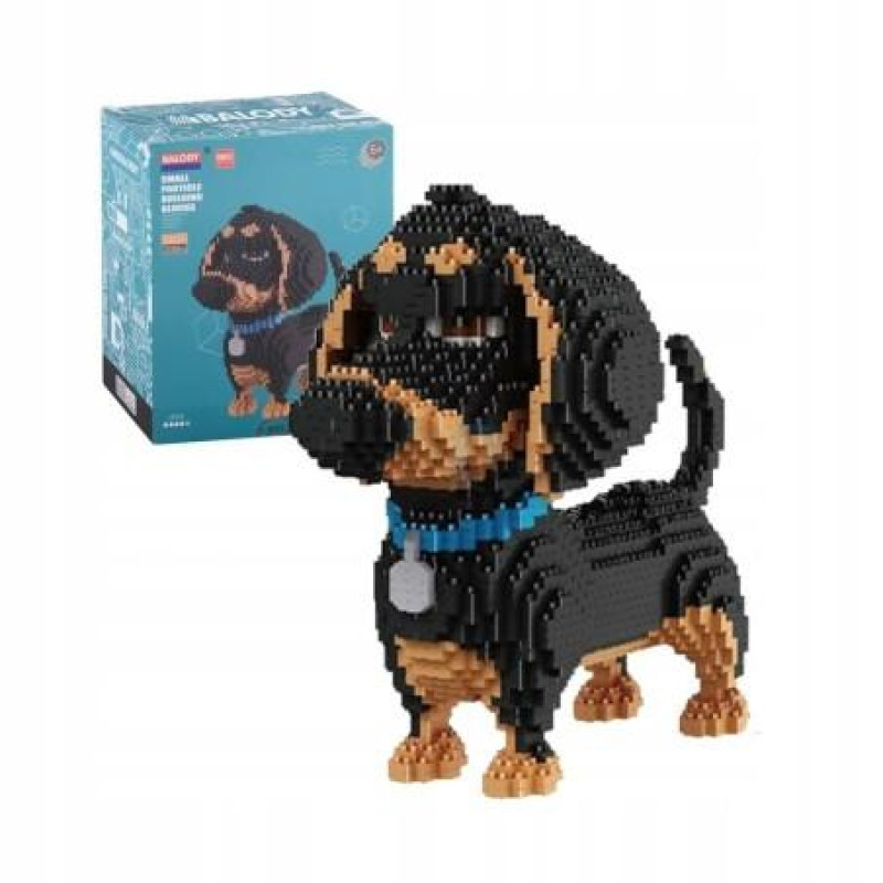 3D-конструктор из 2100 мини-блоков позволяет собрать впечатляющую фигурку собаки породы такса. Из мелких деталей образуется реалистичная модель с контрастной черно-коричневой окраской и точно переданными пропорциями, что делает ее похожей на настоящую собаку. Детали изготовлены из прочного ABS-пласт..