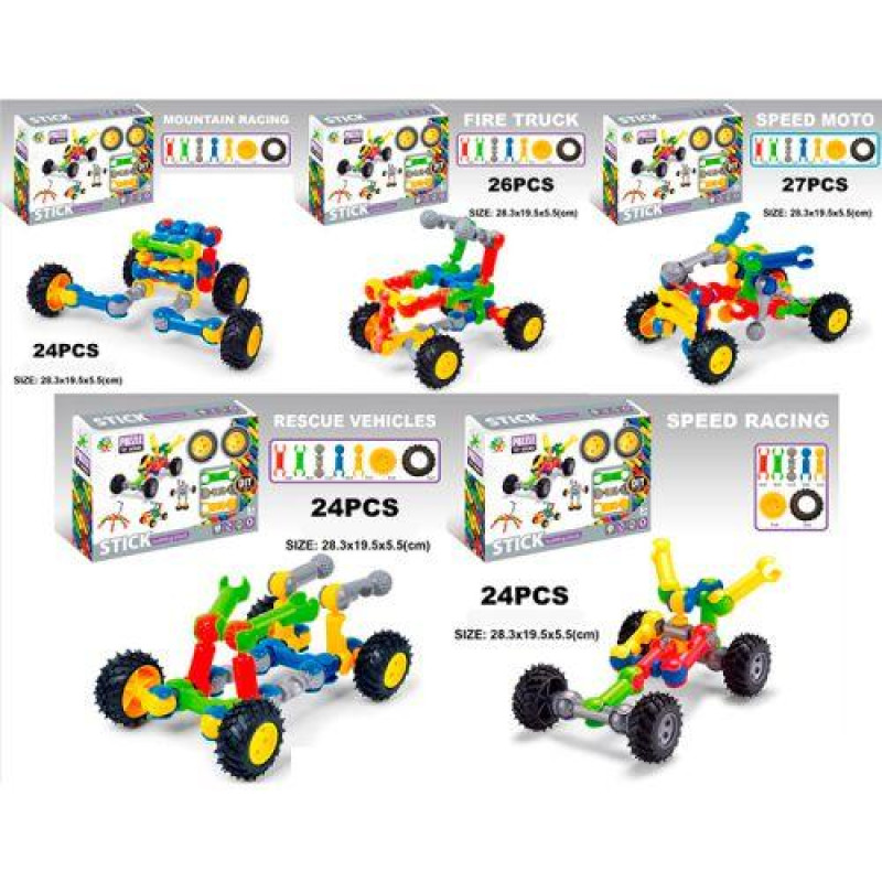 Конструктор транспорт, от 51 дет, ЦЕНА ЗА 1ШТ, В УП. 20ШТ (4вида), в дисплей 27*22*17см..