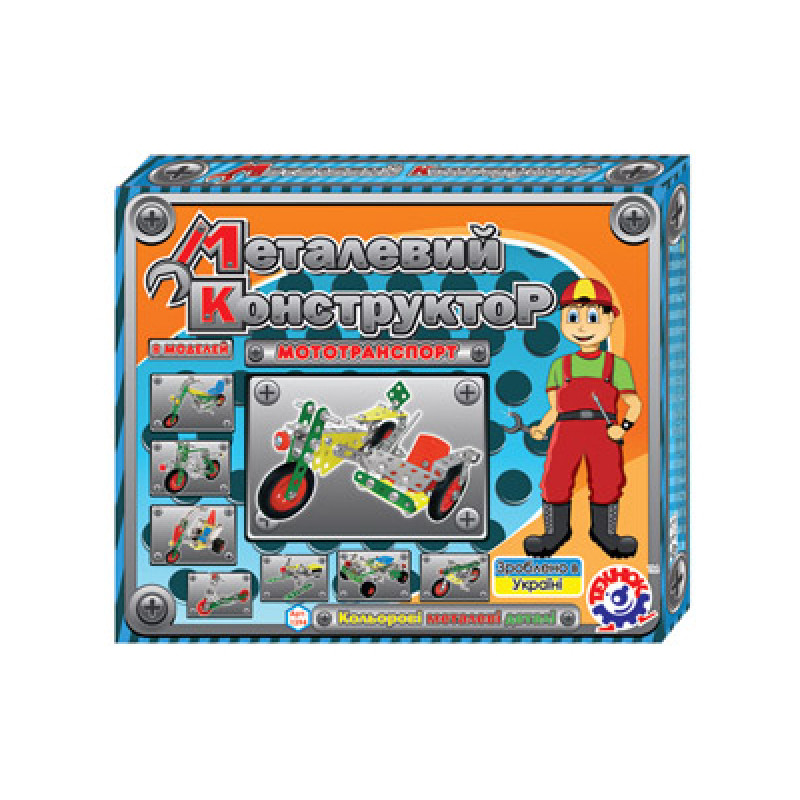Конструкторы развивают у детей сообразительность и внимание, мышление и координацию. Конструктор металлический Мототранспорт, упаковка: коробка 30 х25 х5 см., Технок, Україна