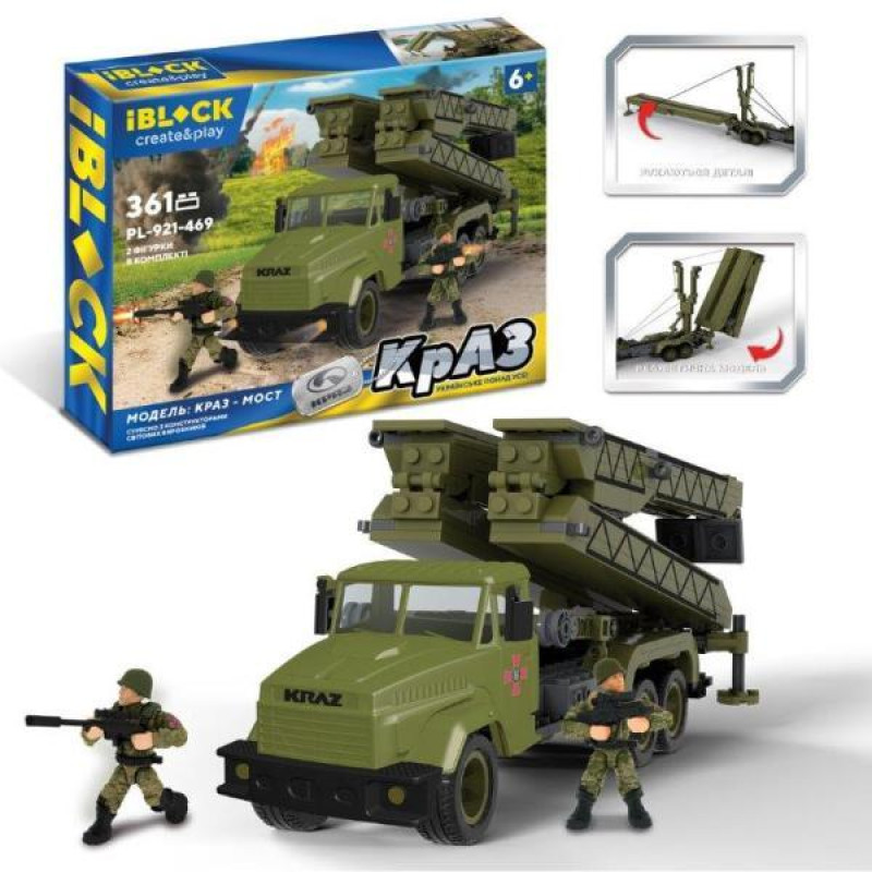 Конструктор IBLOCK Армия КРАЗ Мост, 361 дет, 2 фигурки, в кор. 37,5*26*6см..
