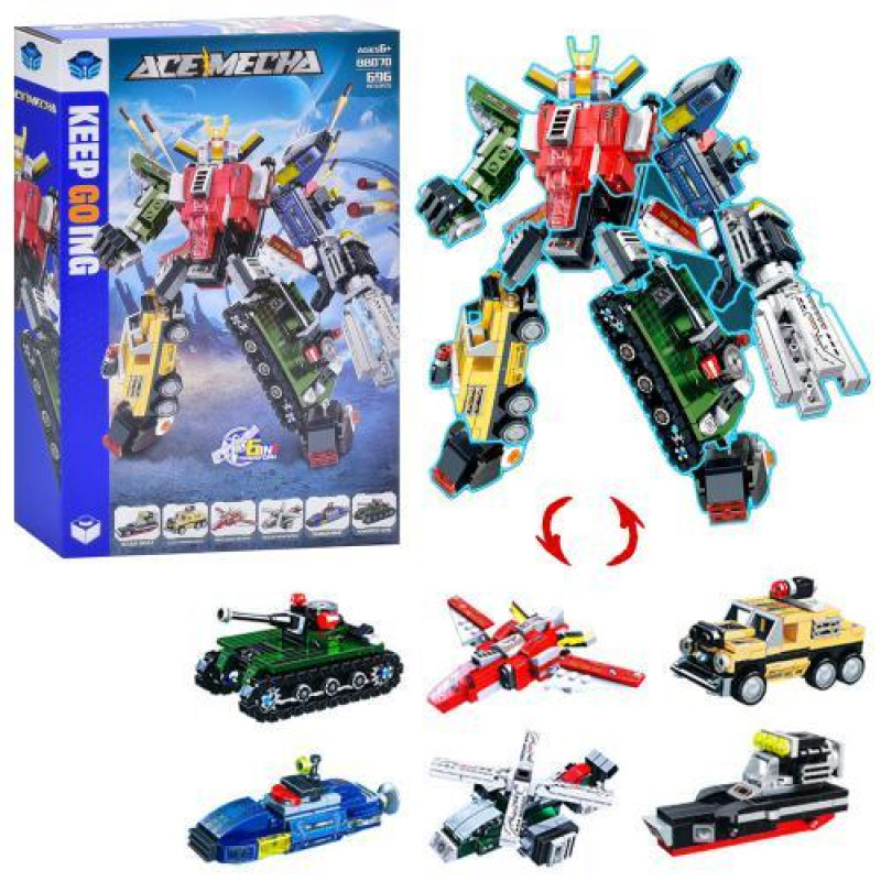 Конструктор военная техника, 6в1, 696 деталей, в кор. 42*27*6,5см..