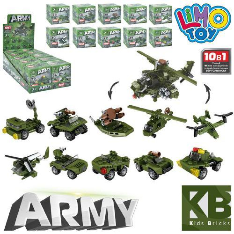 Конструктор военный транспорт, 10в1, LIMO TOY от 28дет, ЦЕНА ЗА 1ШТ, 10видов, в дисплее 24*14,5*8см..