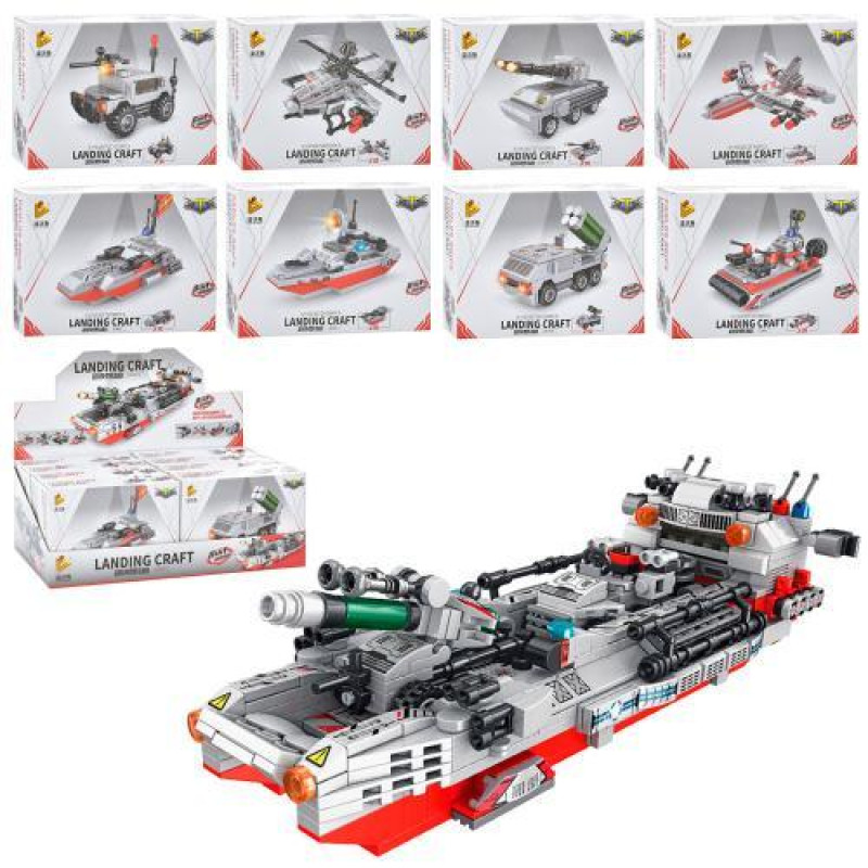 Конструктор военный, транспорт 8в1, от 46дет, ЦЕНА ЗА 1ШТ, 8 видов, дисплеи, 38*14*20см..