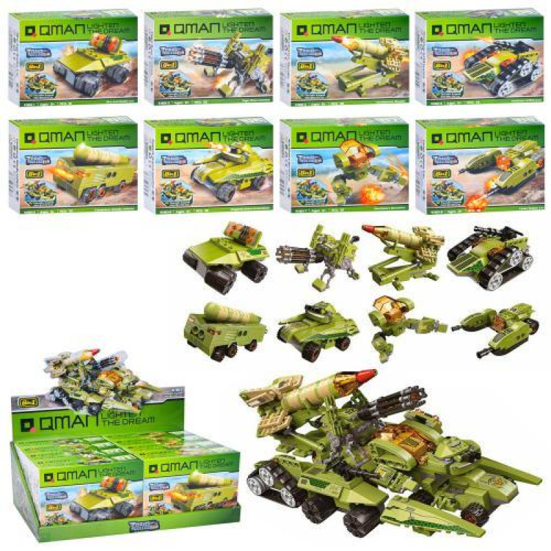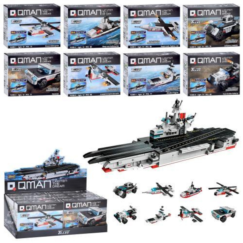 Конструктор Qman военный, транспорт, от 58дет, ЦЕНА ЗА 1ШТ, в кор. 8в1, 8шт, арт: 41103..