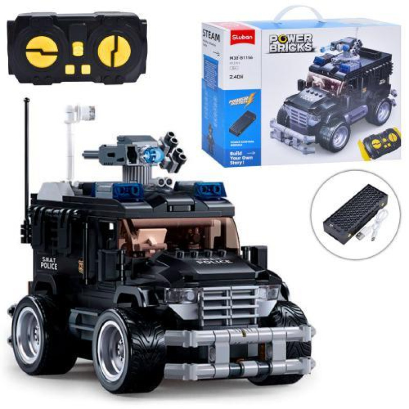 Конструктор "Штурмова машина" складається з 412 деталей. Він оснащений радіокерованим пультом 2,4G, аккумулятором, включає фігурки та USB для заряджання. Цей конструктор дозволяє захопливо грати та розвивати фантазію. Подаруйте цей конструктор дитині і вона порине у світ пригод!..