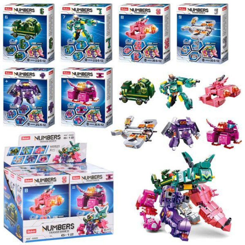 Конструктор SLUBAN трансформер, от 92 дет, 6шт (6видов) в дисплее, 29*19,5*14см