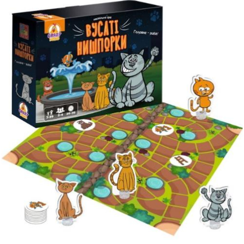 Настольная игра Vladi Toys «Маршрутна. Вусаті нишпорки» – веселая игра для детей и взрослых от 7 до 99 лет! Выбирай одного из четырех кошек и помогай ему собрать больше рыбы, чем другие кошки. Двигайся по полю, ищи рыбу в фонтанах и остерегайся собак!Комплектация: игровое поле, 16 жетонов, 4 фигурки..