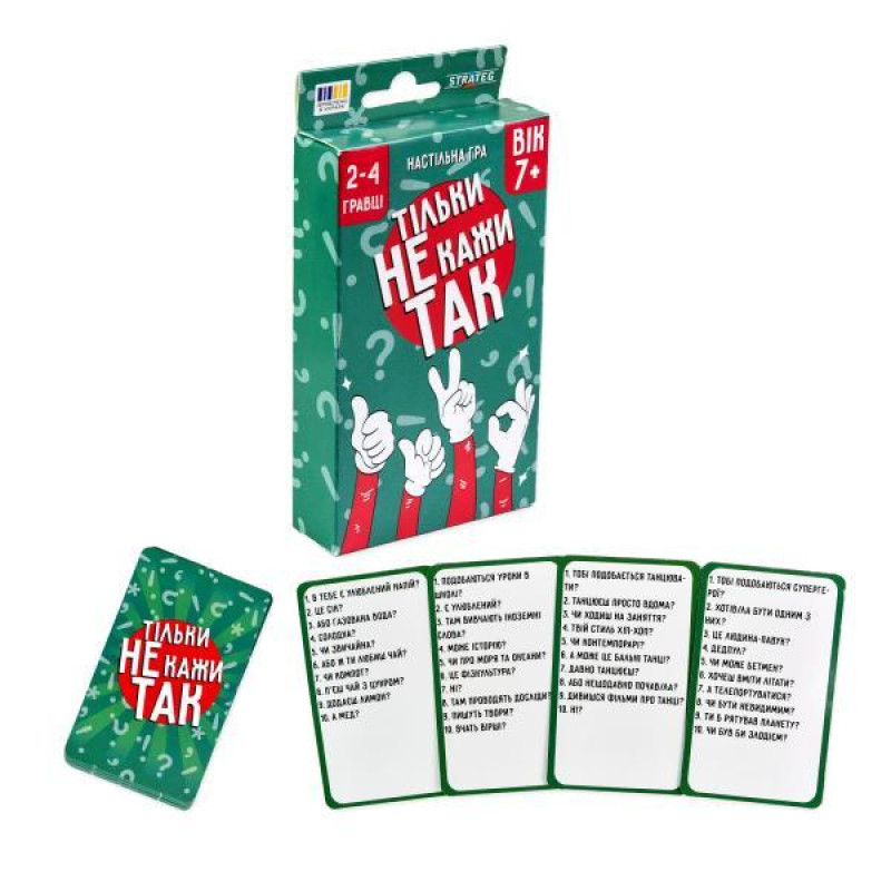 "Только не говори Да" — веселая игра, в которой слова "Да" и "Нет" запрещены! Тащите карту и быстро отвечайте на простые вопросы, обходите "да" и "нет" и становитесь победителем. Проявите смекалку и весь словарный запас, чтобы ввести соперников в заблуждение!¦ Возраст: 7+¦ Размеры: 14,5х7,9х2¦ Вес: ..