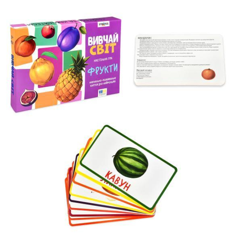 Обучающие карточки «Изучай мир. Фрукты» — яркий набор для детей от 3 лет. Карточки помогают легко изучать названия фруктов, соотносить слово с изображением и познавать мир через игру.Они развивают память, речь и внимание, обогащают словарный запас и делают обучение увлекательным. Подходят для заняти..