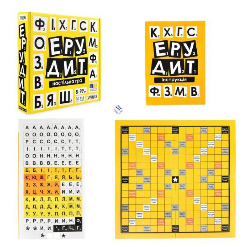 Настольная игра «Ерудит» — классика среди игр для тех, кто любит слова и интеллектуальные соревнования.Игроки по очереди составляют слова из букв на игровом поле, зарабатывая очки. Чем длиннее слово и удачнее его расположение — тем больше баллов. Игра развивает мышление, внимание и расширяет словарн..