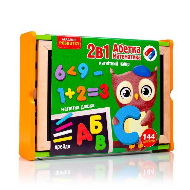 Магнитный набор 2в1 "Азбука и математика" в деревянной коробке (укр.)..
