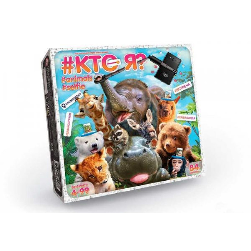 Настольная игра викторина "Кто я?" Animals Selfie", рус. в кор. 18,5*18,5*4см..