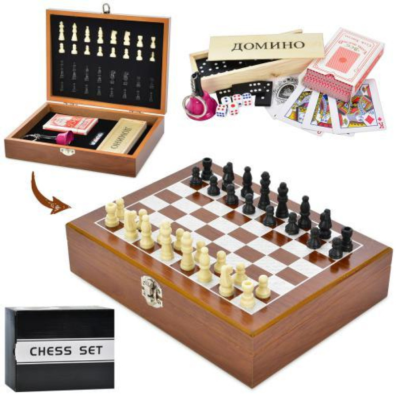 Настольная игра 3в1, шахматы, домино, карты, кубик 6шт, колокольчик, в кор. 26*20*6,5см..