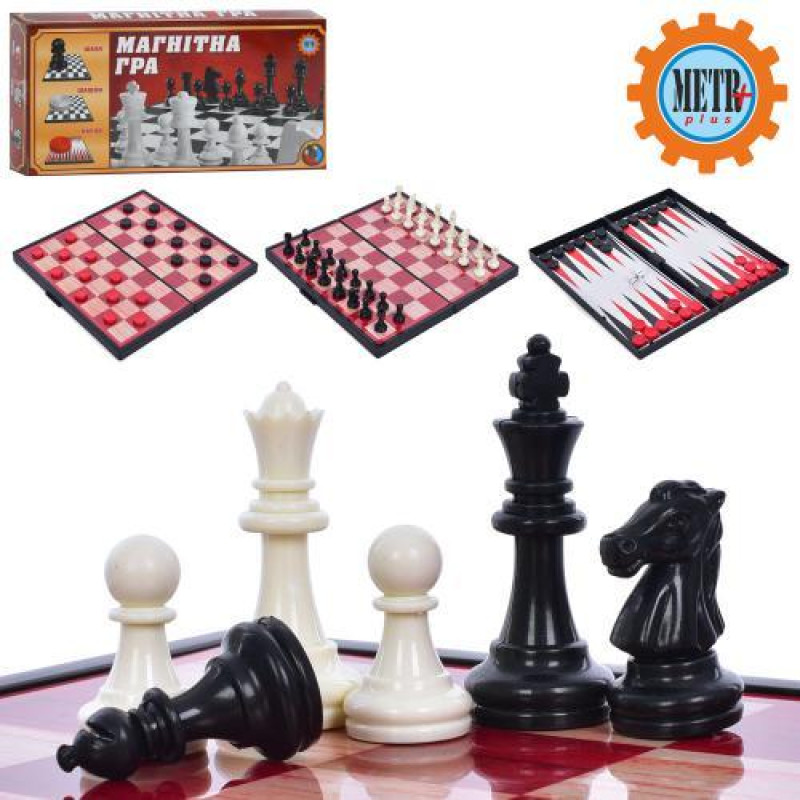 Шахматы магнитные, 3в1, пластик, размер поля 35*31,5см, упаковка: коробка 32*18*5см ..