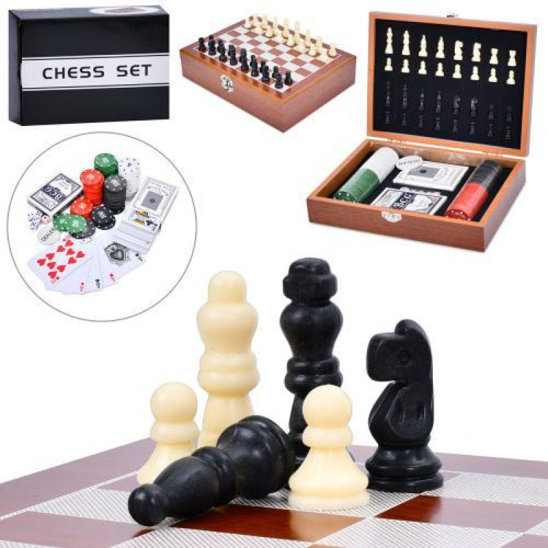 Шахматы деревянные, фигуры пластик,2в1 (покер,2 колоды карт)..
