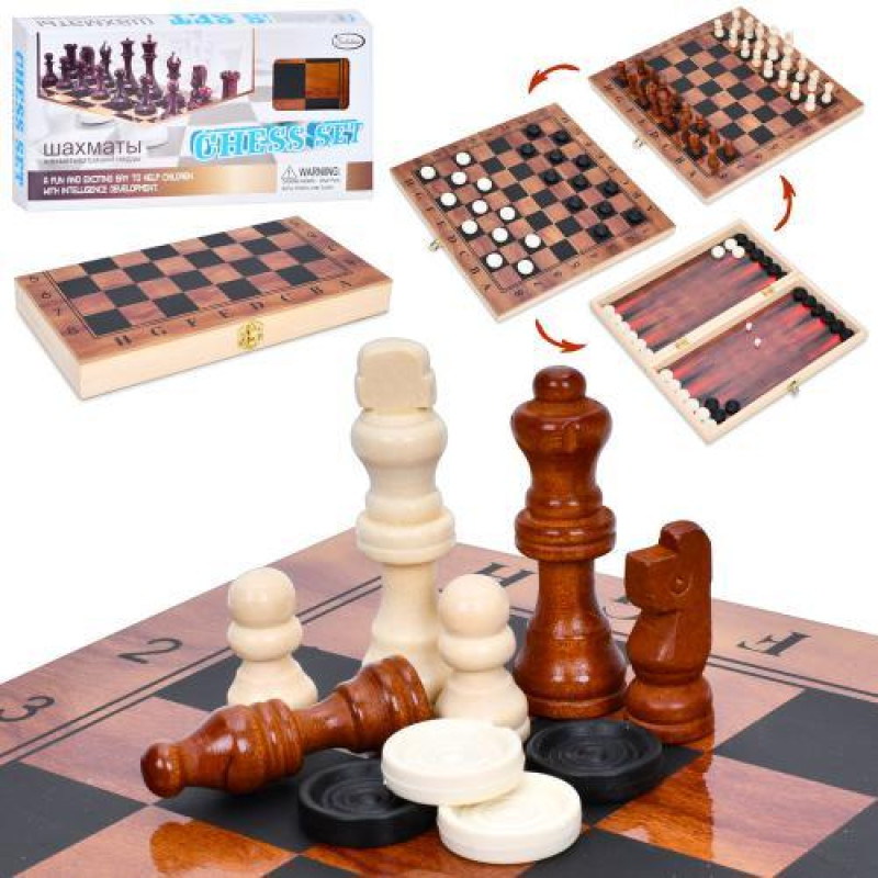 Шахматы деревянные, 3в1(шашки, нарды), фигуры деревянные..