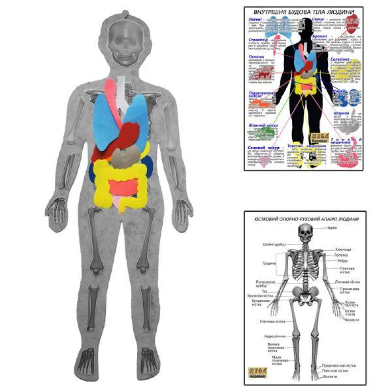 Скелет человека с органами HEGA с плакатами-указаниями арт: HG-1239720045