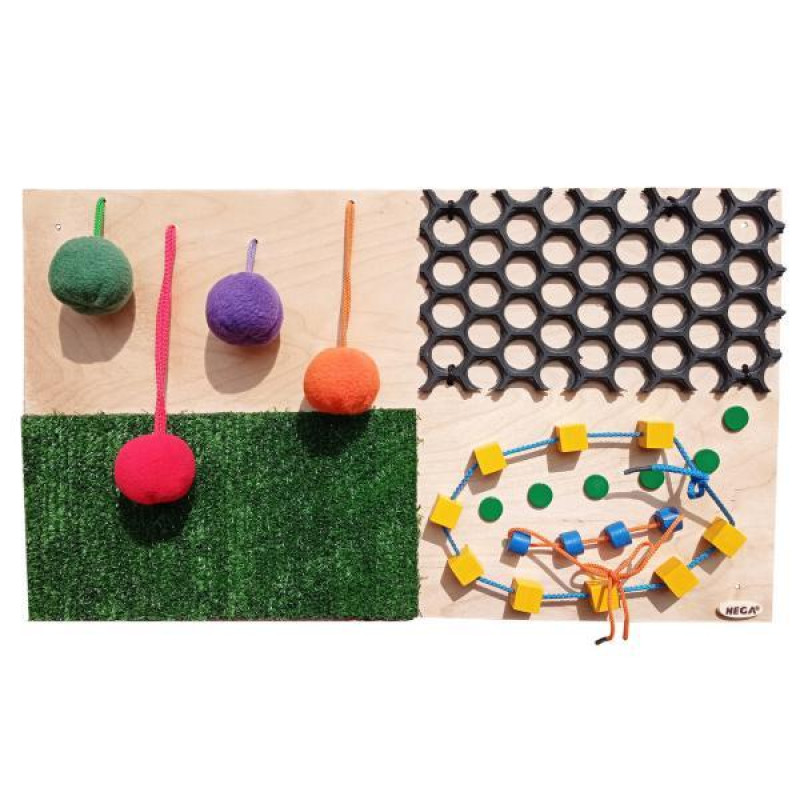 Тактильная панель мини направлена на развитие детской тактильной и зрительной стимуляции, координации и внимания. Назначение: развитие мелкой моторики, сенсорных и тактильных ощущений у детей дошкольного и раннего школьного возраста в учебных заведениях Украины. Панель сделана из качественных и безо..