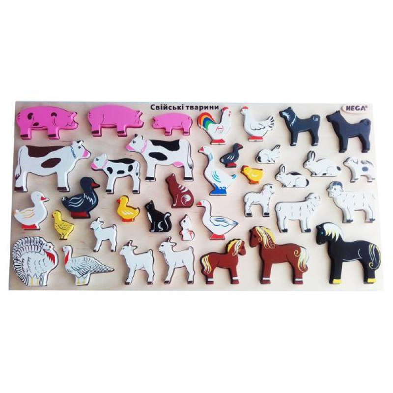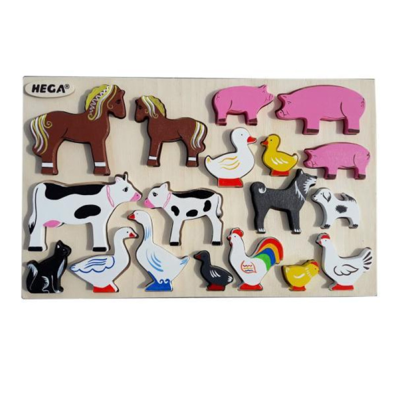 Набор HEGA Домашние животные деревянный пазл рамка вкладыш 18 больших фигурок арт: HG-391297302