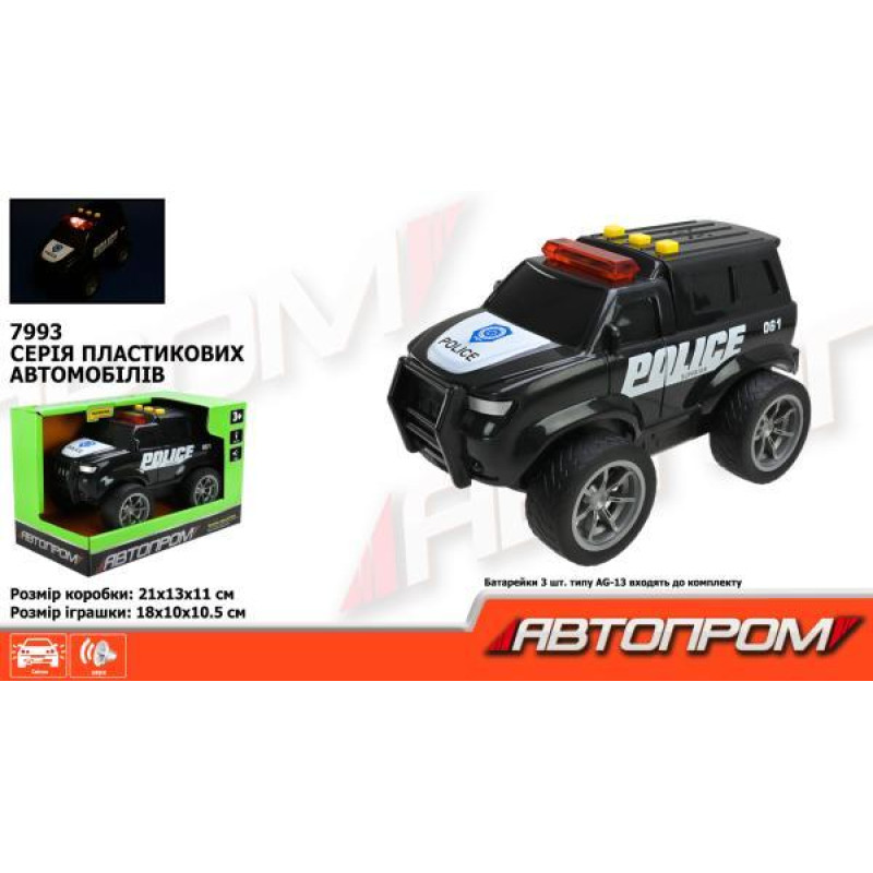 Машинка торговой марки Автопром - уменьшенная копия настоящего автомобиля. Предназначена для игры в доме и на улице. Для детей старше 3-х лет. Размер и масштаб: . Характеристики: Свет;Звук открываются двери . Тип питания и управления- Батарейки . Материал..