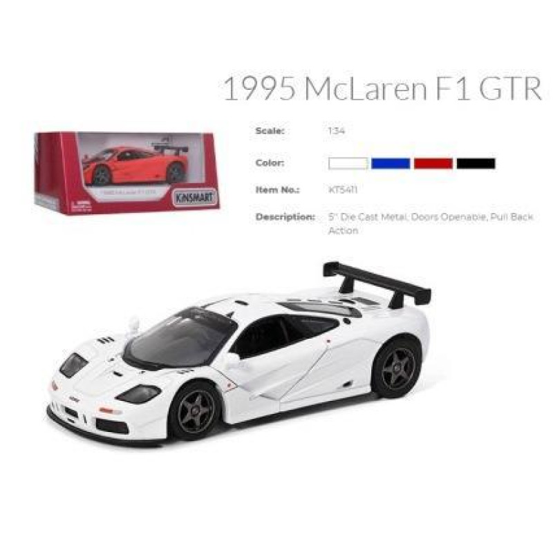 Машина метал. "Kinsmart" "McLaren F1 GTR", инерц., откр. двери, 4 цвета, в кор. 16*7*8см..