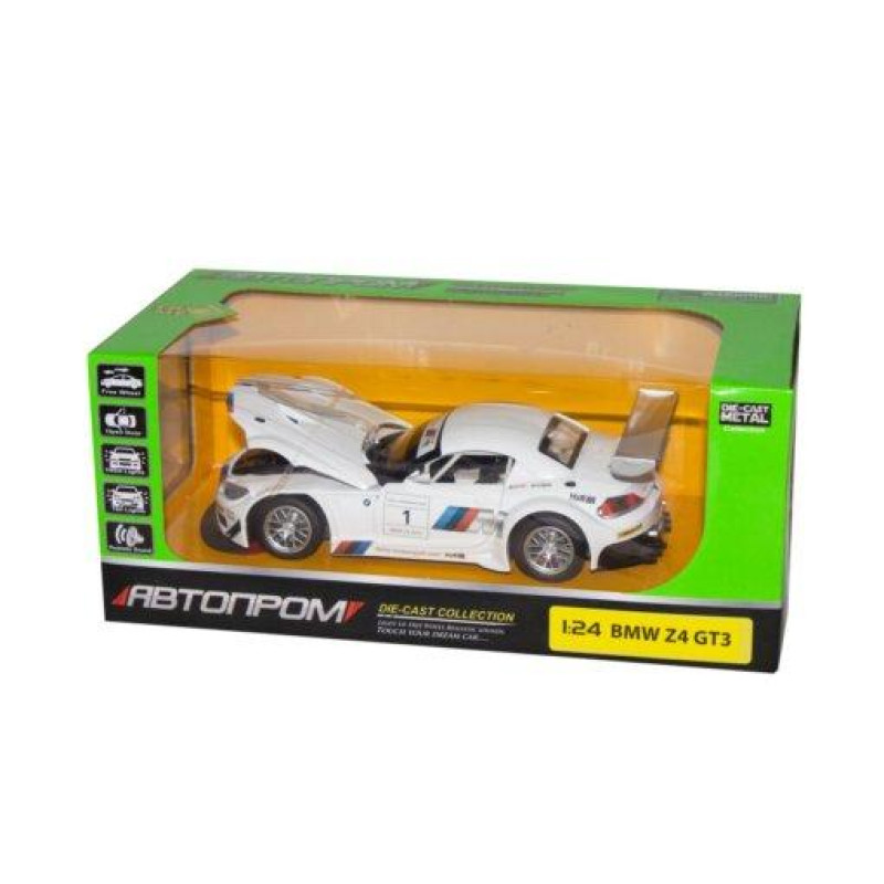 Машина метал. АВТОПРОМ, 1:24 BMW M6 GT3, синий цвет, на батарейках, свет, звук, откр.двери, капот, багаж. (68255B)