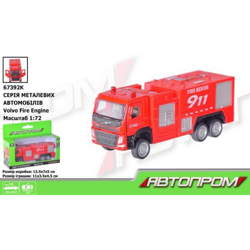Машина металл. "АВТОПРОМ" 1:72 Volvo Fire Engine, движущиеся элементы, в кор. 13,5*7*5см..