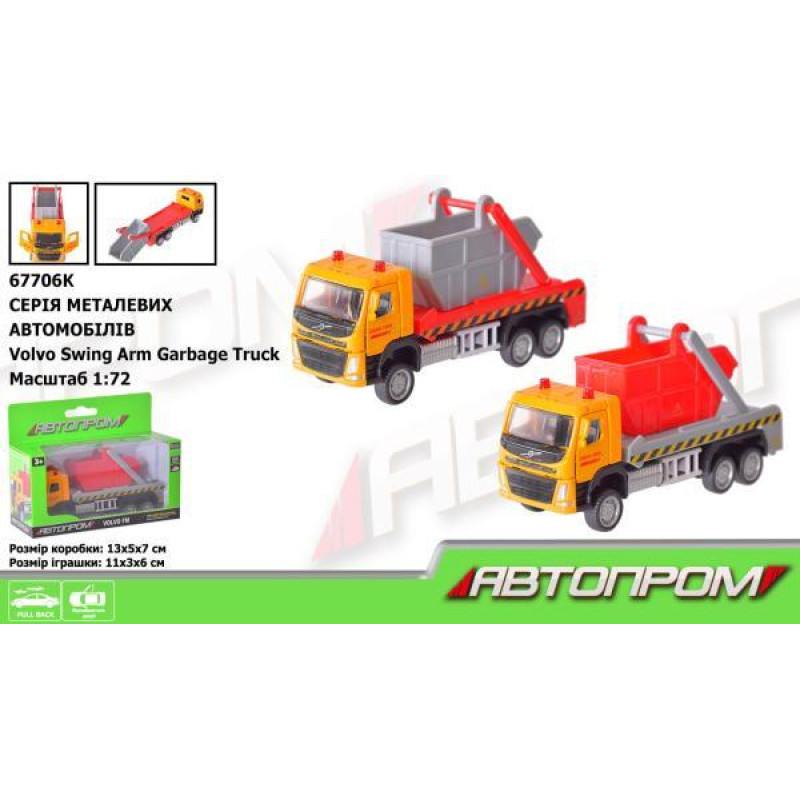Машина металл. "АВТОПРОМ" 1:72 Volvo Swing Arm Garbage Truck, подвижные элементы, в корр. 13,5*7*5см..